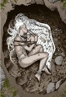 同样的羽毛遍布他的甲板。女子躺在当中,一如斯万发现她时的样子。苍白如霜,不着片缕。后背靠近肩胛骨的位置,有两道对称的伤口。她的皮肤烧得滚烫,嘴里呢喃着无人能懂的语言,如同潮水拍打着暗礁,断断续续。